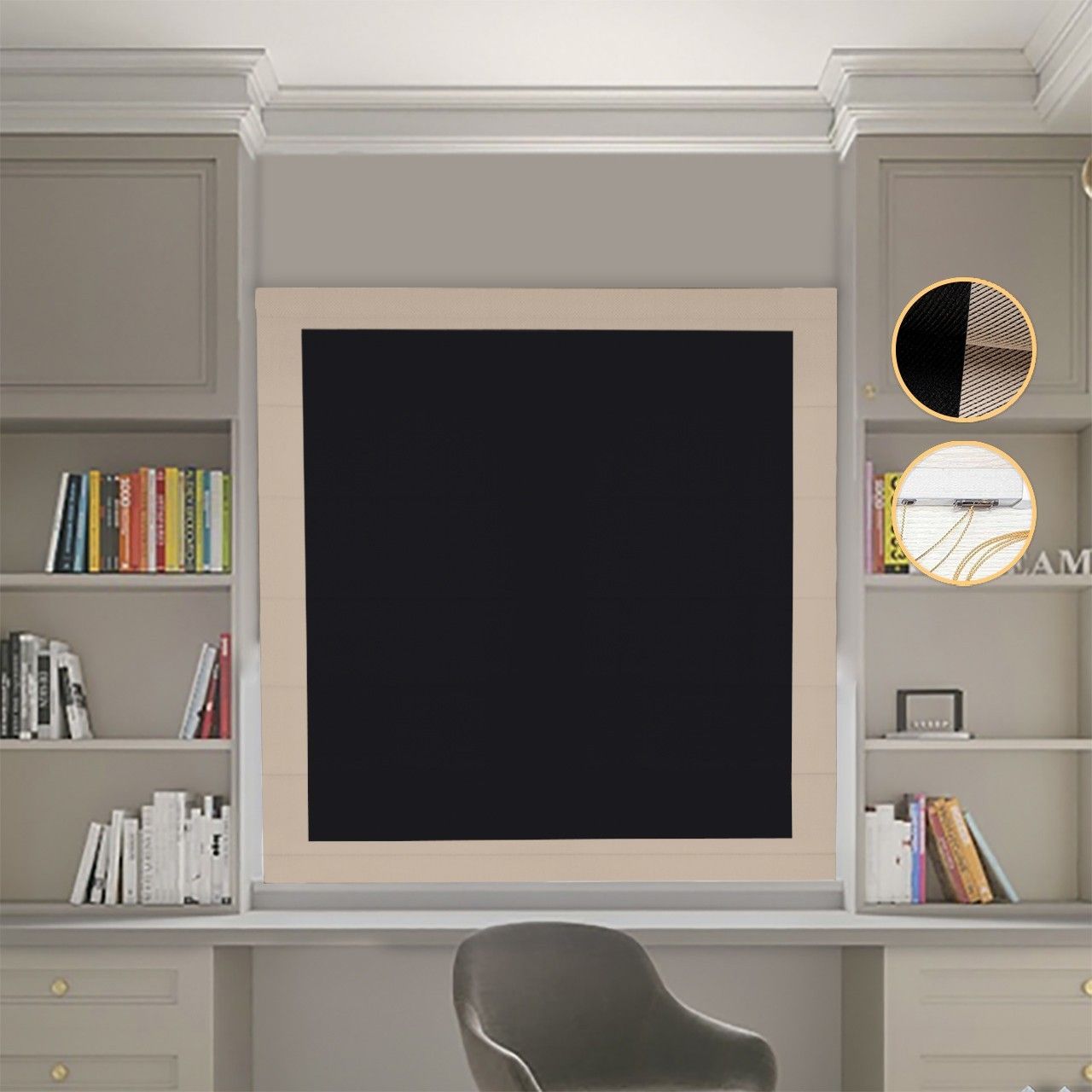 Римська штора DECOLIV Блэкаут Перфект черный с бежевыми кантами
