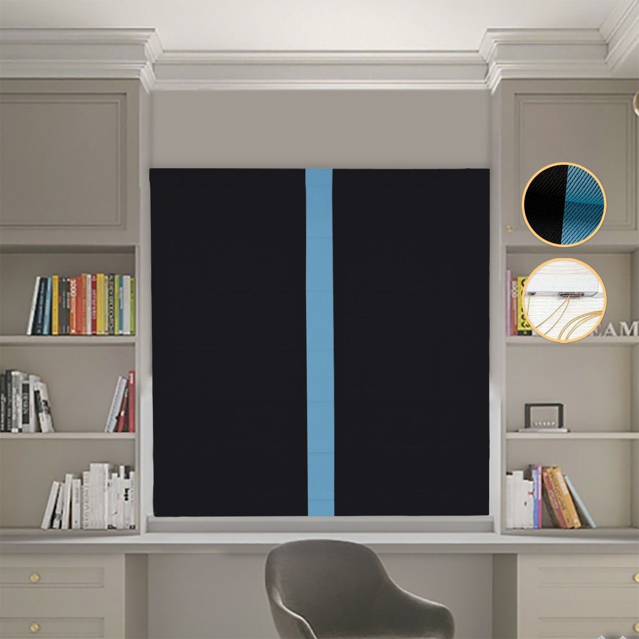 Римська штора DECOLIV Блэкаут Перфект черный с голубым кантом по центру
