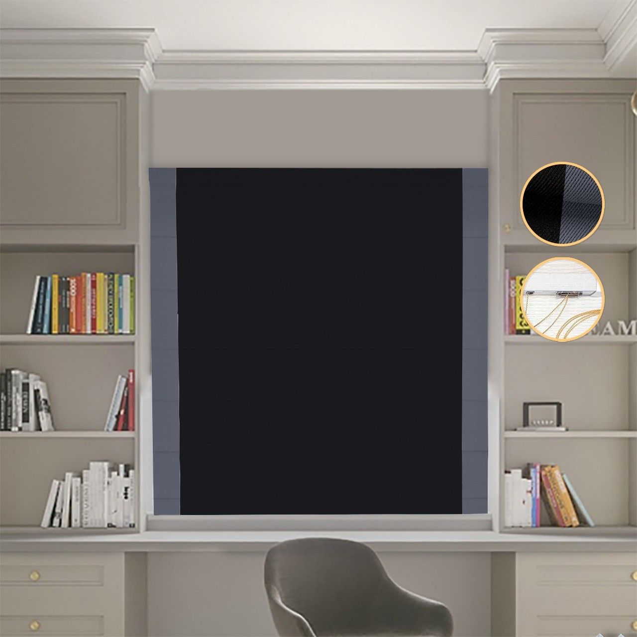 Римська штора DECOLIV Блэкаут Перфект черный с графитовыми кантами по бокам