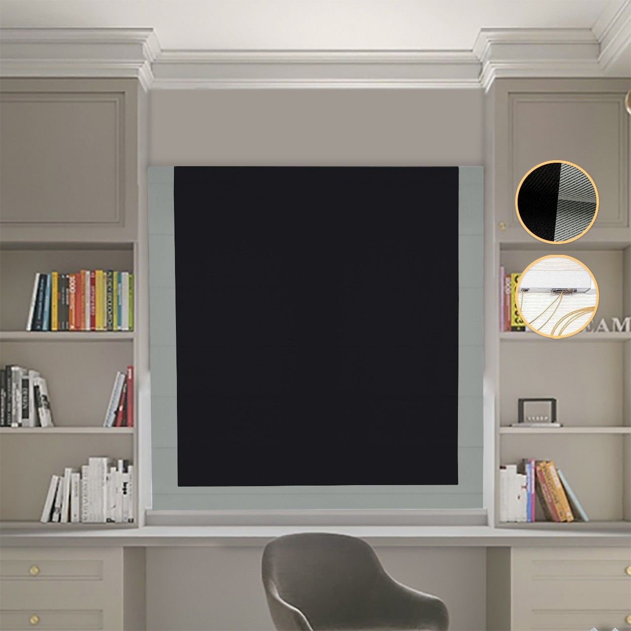 Римська штора DECOLIV Блэкаут Перфект черный с оливковым кантом