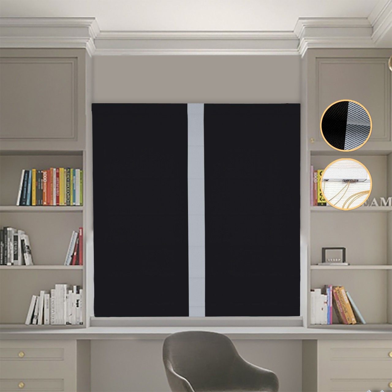 Римська штора DECOLIV Блэкаут Перфект черный с світло-серым кантом по центру