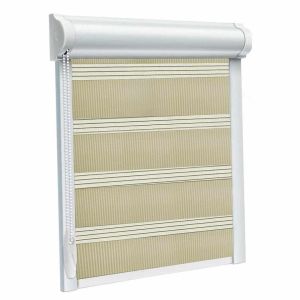 Рулонна штора день-ніч закритого типу комплектується захисним алюмінієвим коробом і бічними П-образними напрямними усередині яких розміщена тканину.