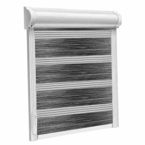 Рулонна штора день-ніч закритого типу комплектується захисним алюмінієвим коробом і бічними П-образними напрямними усередині яких розміщена тканину.