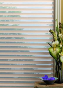 При накладенні непрозорих смужок на непрозорі, а прозорих на прозорі при одночасному повному опущенні ролети на все вікно створюється ефект затемнення на 50%.