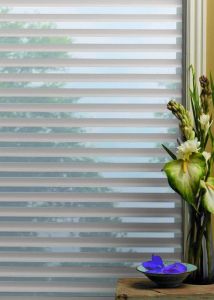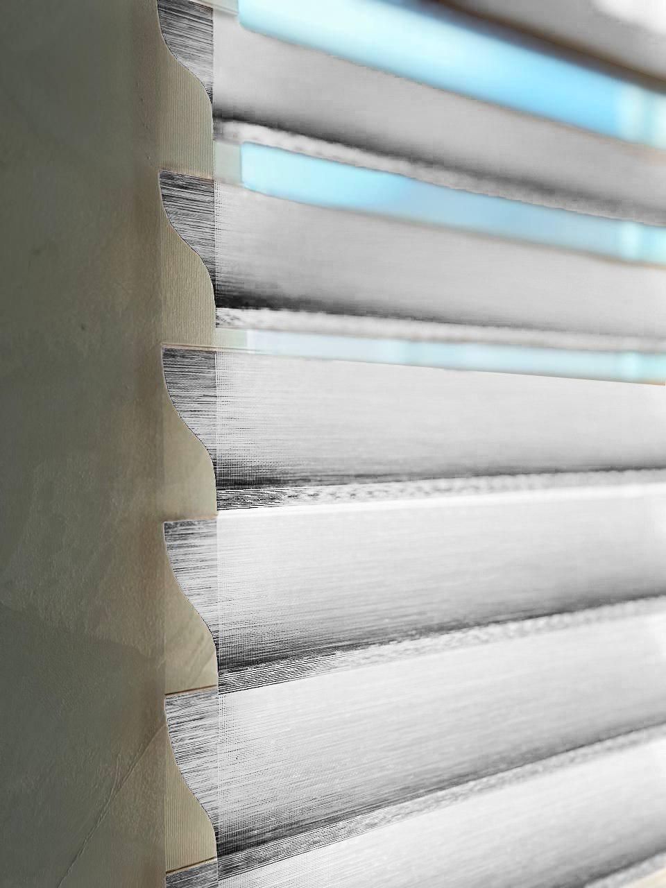При накладенні непрозорих смужок на непрозорі, а прозорих на прозорі при одночасному повному опущенні ролети на все вікно створюється ефект затемнення на 50%.